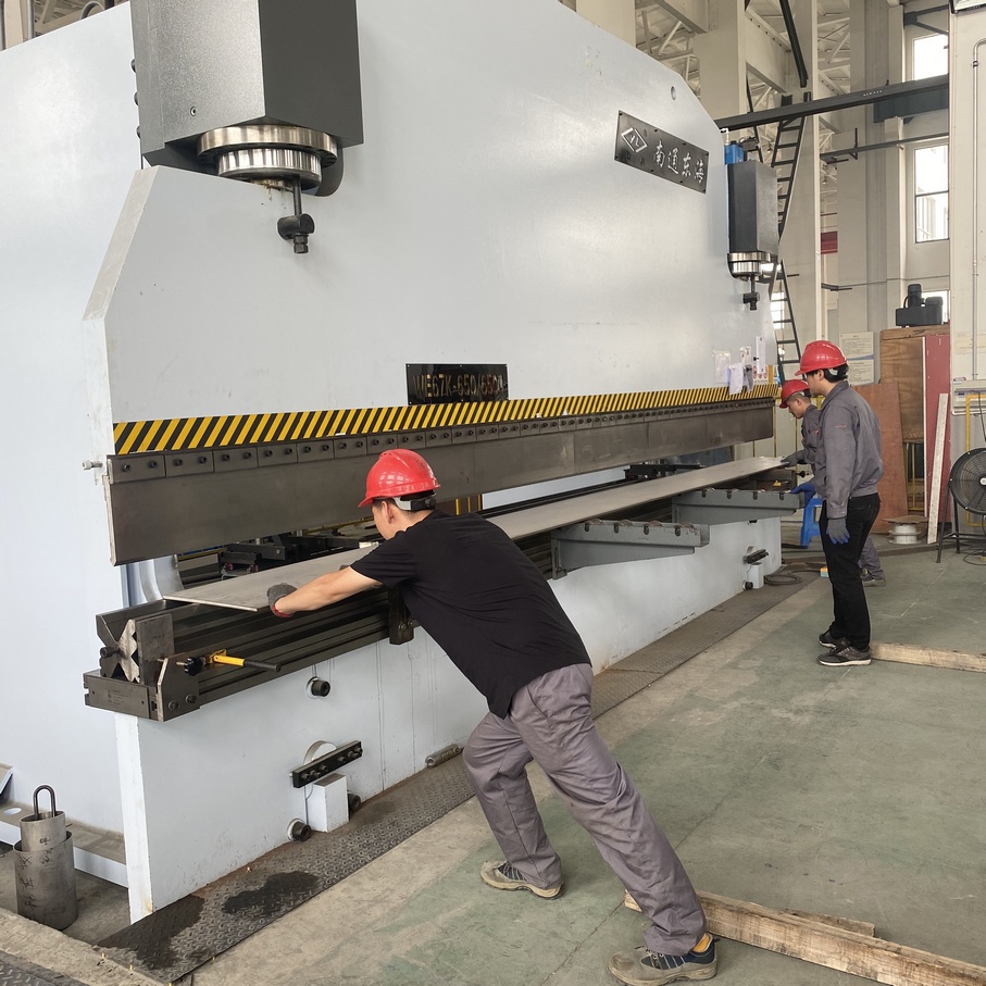 2、折彎機:650噸液壓動力,6.5米長,變位自動調節器,芬蘭數控係統,可自動校直係統,候口深度0.75米,折彎厚度1-16mm,直線度±0.5mm。