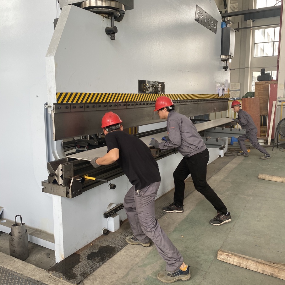 2、折彎機:650噸液壓動力,6.5米長,變位自動調節器,芬蘭數控係統,可自動校直係統,候口深度0.75米,折彎厚度1-16mm,直線度±0.5mm。
